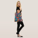 Vibrant abstract pattern with swirling shapes and organic forms in shades of orange, blue, and teal tote bag