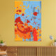 A vibrant abstract summer blue-orange paint splatter canvas print is part of the Orange and Blue Wall & Home Decor collection. The digitally created artwork allows for color customization by adjusting the fill and element colors to match your existing home décor. This makes it a fantastic personalized wall decoration gift.