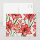 Vibrant Amaryllis Watercolor Pattern in Red Postcard