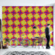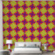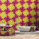 This new wallpaper design features a vibrant and bold geometric pattern. The design includes overlapping shapes in various bright colors such as red, orange, yellow, green, and purple. The repeating pattern forms intricate star-like and diamond-like shapes, giving the wallpaper a dynamic and lively appearance.