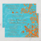 Vibrant Aqua and Orange Floral Wedding Invitation