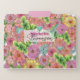This customizable file folder is adorned with a vibrant and intricate floral design, featuring blossoming flowers in hues of pink, green, and yellow against a crisp white background. This intricate detailing offers an aesthetic appeal that makes organization not just a necessity, but a pleasure.