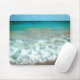 Vibrant and saturated colors in this relaxing beach scene with bright blue teal aqua water and white waves crashing on the brown sand. Watercolor digital painting with some light grunge and aging effects. A colorful touch for any decor or gift.
