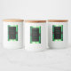 The design features a noble shimmering green frame with fine decor lines, on a plain black background.