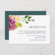 Modern floral reception card matches our Vibrant Bloom wedding and event invitations, and features a bouquet of watercolor roses and peonies in bright shades of blush pink, cream and violet purple, with green botanical leaves. Personalize with your wedding reception details including timing, venue and any additional details like parking or transportation.