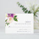 Modern floral RSVP card matches our Vibrant Bloom wedding and event invitations, and features a bouquet of watercolor roses and peonies in bright shades of blush pink, cream and violet purple, with green botanical leaves. Personalize with your desired RSVP date as well as custom accept and decline wording.