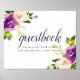 Designed to match our Vibrant Bloom wedding collection, this elegant botanical sign invites wedding guests to sign your guestbook. Personalize with two lines of custom text in calligraphy script and traditional serif lettering (shown with "Guestbook; please leave your wishes for the new Mr. and Mrs. [name]"), framed by lush watercolor pink and purple flowers and greenery.