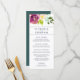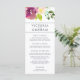 Our garden floral wedding menu features your starter courses, entrees and desserts in elegant lettering, accented with a posy of painted watercolor rose and peony flowers in lush, rich violet purple, blush pink and green. Coordinates with our Vibrant Bloom wedding collection.