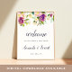 Welcome guests to your wedding with our Vibrant Bloom poster, featuring lush watercolor botanical greenery and pink and purple flowers, with "welcome to our happily ever after," your names, and wedding date in a chic mix of traditional serif and calligraphy typefaces.