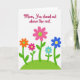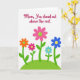 Designed with a simple white background, this card features a small green hill near the bottom where five stylized flowers rise together like close friends leaning in ❤️. A tall fuchsia flower stands in the middle, and the surrounding blooms include bright orange, deep blue, hot pink, and soft aqua petals that feel like a cheerful little bouquet. Each flower has a round center in either lime green or sunny yellow, adding a sweet, friendly contrast. Above the flowers, a short message sits near the top in a flowing, dark-toned lettering style, spaced so it feels airy and easy to read. The tallest bloom subtly draws the eye upward, giving the scene a romantic “you stand out to me” kind of focus without needing extra decoration 🌼. Smooth petals and simple green stems keep the look neat and approachable, like a gentle note left for someone special. The hill curves softly from left to right, and all five stems emerge from it in a tidy cluster beneath the top text.