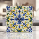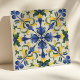 Vibrant Blue and Yellow Mediterranean Floral Ceramic Tile