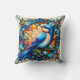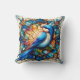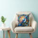 Vibrant Blue Bird Perched on Flower Throw Pillow