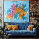 Vibrant Blue Cherry Blossoms Koi Fish Lotus Tapestry