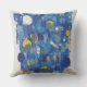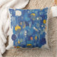 Vibrant Blue Gold Abstract Geometric Drip Throw Pillow