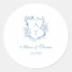Elegant vibrant blue script floral monogram crest wedding classic envelope seal sticker.
