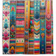 Unleash a burst of energy with our vibrant, colorful striped textile design. Featuring bright horizontal stripes in pink, blue, orange, and yellow, each with unique floral, paisley, or geometric patterns, this fabric epitomizes lively bohemian style.