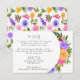 Elements: tropical floral wreaths surrounding your names an tetail. Names are in a whimsical script, while details are in a modern sans serif font. Colors: purple, pink, yellow, green, orchid, plum, magenta, fuschia, lemon, Themes: bright, tropical, beach, destination, romantic, bohemian, cheerful, modern, casual. Collection: Vibrant Casual Magenta Violet Yellow Wedding Collection Product Type: Enclosure Card