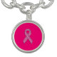 Vibrant Chrome Glitter Style Pink Ribbon Awareness Bracelet