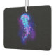 Large, blue, artistically drawn, glowing, bright jellyfish, with long tentacles on black background with purple bioluminescence. Luminous jellyfish.