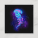 Large, blue, artistically drawn, glowing, bright jellyfish, with long tentacles on black background with purple bioluminescence. Luminous jellyfish.