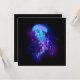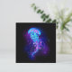 Large, blue, artistically drawn, glowing, bright jellyfish, with long tentacles on black background with purple bioluminescence. Luminous jellyfish.