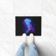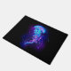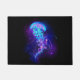 Large, blue, artistically drawn, glowing, bright jellyfish, with long tentacles on black background with purple bioluminescence. Luminous jellyfish.