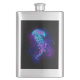 Large, blue, artistically drawn, glowing, bright jellyfish, with long tentacles on black background with purple bioluminescence. Jellyfish.