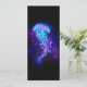Large, blue, artistically drawn, glowing, bright jellyfish, with long tentacles on black background with purple bioluminescence. Luminous jellyfish.