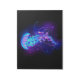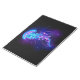 Large, blue, artistically drawn, glowing, bright jellyfish, with long tentacles on black background with purple bioluminescence. Luminous jellyfish.
