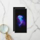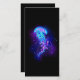 Large, blue, artistically drawn, glowing, bright jellyfish, with long tentacles on black background with purple bioluminescence. Luminous jellyfish.