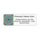 This return address label design features a vibrant and eyecatching pattern consisting of colorful circles or rings. It also features a personalized person, family or business name, above a personalized mailing address.