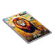 Lion themed personalized notebook. A beautiful ai illustration of a lion in a stunning stained glass and broken tiles motif style in earthy colors like brown and blue.
