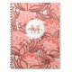 Vibrant Coral Floral Pattern Monogrammed Notebook
