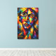 Transform your living space with this striking cubist-inspired canvas print by ZR21designs, featuring a fragmented human face built from bold geometric shapes and vibrant, multi-colored textures.