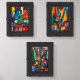 Bring a burst of festive energy into your home with this set of three framed wall art prints, each showcasing a vibrant Cubist-style Christmas painting. The compositions feature bold outlines, dynamic abstract shapes, and a beautifully fragmented perspective that turns traditional holiday elements—stylized trees, wrapped gifts, ornaments, and hints of warm family moments—into striking modern art. Rich, celebratory colors and layered geometric planes create a lively visual rhythm that transforms any space instantly.