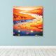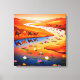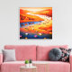 The rich palette of fiery oranges and reds of the desert hills contrasts beautifully with the deep blues of the water, while the bright pink, yellow, and white lotus flowers provide a magical focal point. This piece is perfect for adding a sense of calm, wonder, and a pop of brilliant color to any room.