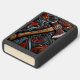 A beautifully crafted fireman's axe lies on an elaborate background filled with swirling colors and patterns. The axe features detailed carvings on its blade, drawing attention to its craftsmanship.