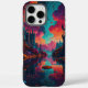 This phone case design features a vibrant and surreal landscape, reminiscent of a dream or a fantasy world. Dominated by a rich, saturated color palette, the scene showcases a flowing river or body of water that reflects the fiery hues of the sky above. The abstract clouds swirl with shades of red, orange, yellow, and purple, creating a dramatic and dynamic atmosphere.