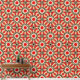 This vibrant wallpaper boasts an intricate geometric pattern that draws inspiration from traditional African textiles. Bold and striking, the color palette features red, black and cream hues. The central motif showcases an eight-pointed star in rich red, accented with black details. This star radiates from a cream square, creating a mesmerizing focal point. Surrounding the star, alternating bands of smaller geometric elements (also in black and cream) form a dynamic tessellation. These angular shapes evoke movement and rhythm.