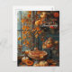 A bountiful Thanksgiving postcard featuring a stunning autumn window scene, adorned with vibrant fall leaves, plump pumpkins, and a delicious-looking pie. The warm hues and cozy details perfectly encapsulate the spirit of the harvest season. Send heartfelt wishes for a truly blessed and beautiful Thanksgiving!
