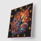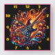 A striking electric guitar emerges from a fiery explosion of colors, blending intricate patterns of flames and flowing designs that create a captivating visual symphony.