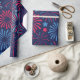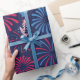 A dazzling pattern featuring fireworks bursting in shades of red and blue against a deep navy background. Stars are scattered throughout the design, adding a festive and celebratory touch.