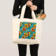 A jumbo bag covered in a bold, multicolor floral pattern in rich blues, reds, yellows, and greens, offering a cheerful, artistic statement for shopping, storage, and gifting to anyone who loves bright, uplifting accessories with a premium feel.
