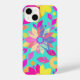 This lively and colorful floral pattern features a mix of bright yellow, pink, and blue flowers, accented by geometric shapes that add a modern, fresh touch to the design. The bold, vibrant colors against the cool turquoise background create a visually striking look,