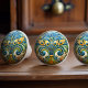 The "Vibrant Floral Symphony Ceramic Knob" is a true celebration of Art Nouveau artistry, featuring a lush, symmetrical floral design that radiates from the center. The bold, vibrant colors of blue, yellow, and green are masterfully combined to create a sense of movement and life. Gold accents highlight the intricate details, adding a touch of sophistication and luxury. The organic shapes and flowing lines of the floral pattern evoke a sense of natural beauty and elegance, making this knob not just a practical accessory, but a piece of art. Perfect for those who appreciate the blend of functionality and exquisite design, this ceramic knob will bring a lively and elegant touch to any room.
