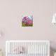 Add a punch of color to your wall with this design that features a painterly photo-illustration of a pink tree flowering in early spring.