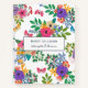 Beautiful notebook with a floral pattern of pretty bouquets and butterflies against a white background. The flowers are pink, white, purple, blue, and yellow and among them grow greenery and berries. Personalize with your name and the purpose of the floral notebook.