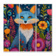 Discover a stunning piece of dot art featuring a vibrant blue fox with orange accents, surrounded by a lush, colorful garden of fantastical flowers and foliage. This whimsical illustration brings a touch of nature and fantasy.