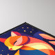 Set beneath a magical indigo night sky scattered with golden stars and framed by whimsical emerald and blush foliage, this artwork creates a striking focal point for any room. The clean vector style, smooth gradients, and high-contrast palette give the piece a contemporary yet cozy feel.