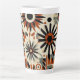 A vibrant geometric garden bursts to life in warm terracotta, deep black, and soft cream tones. Bold, abstract flowers with radiating petals rise above a structured base of interlocking shapes, blending nature’s organic forms with modernist precision.